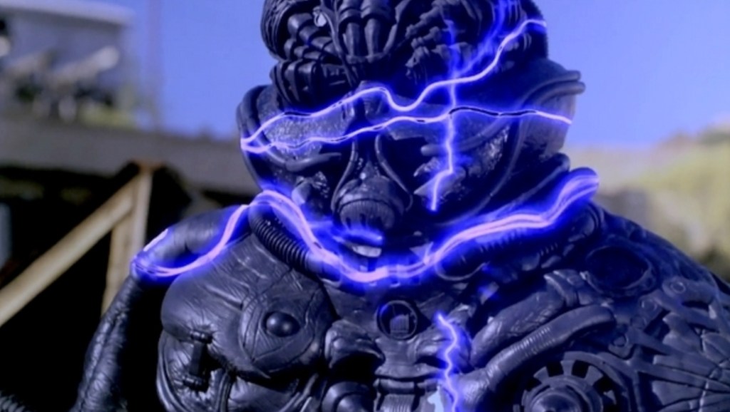 However, that’s where the similarities end, because believe you me, Nebula is no Predator. Featuring future John Wick director Chad Stahelski encased in a chonky robot suit that has a drill-bit hand, an inability to turn its head and some swirly CGI tinkering that makes it completely incomprehensible, it’s less the ultimate hunter and more like an action figure that someone’s set to “evil” and as a result, makes about as much sense as Alex’s throwing knife that confoundingly comes with a laser sight in the hilt!