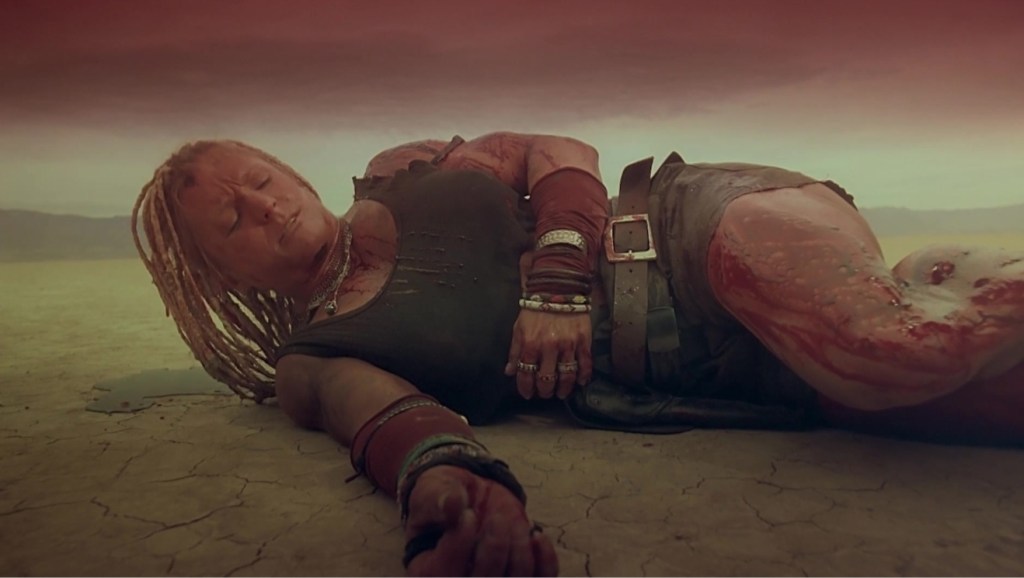 Woah, woah, woah… where are you going? We’re not done yet, because Nemesis 3 starts (after an excruciatingly long amount of flashbacks to the last film) with Alex lying, bloodied, in the middle of the African desert with a bullet in the back of her skull.