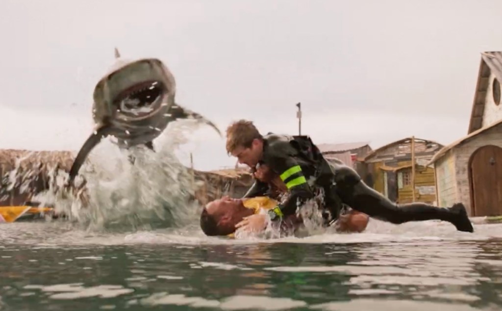 Before we take it too far, let’s take a moment to establish that I’m not suggesting that Deep Blue Sea 3 is Aliens level good; after all, it’s got all the questionable plotting, dumb dialogue and limited resources that’s expected from this kind of flick (fuck, at one point someone actually refers to the rising stakes by mumbling “We’re talking… Seamageddon?”), but director John Pogue tackles this fishy fear flick with a knowing sense of how to actually make this shit work well on screen. Much to my surprise, underwater scenes are genuinely tense and the CGI sharks look pretty good, considering most digital versions of the ferocious fish look about as realistic as bath toys. The various deaths are fun and varied, especially considering the previous film copped out by making the main threat a swarm of Bull Shark babies and vary from one poor sap getting bitten in half as everything north of his belly button is propelled along by a sea scooter as he leaves clouds of crimson in his wake, to a fight being rudely broken up after one of the combatants is spectacularly decapitated. In fact, all the action is noticably above par, with the final scenes of Emma squaring off with the last surviving, fined villain within a submerged trash compactor drawing weirdly positive comparisons to both The Shallows and The Terminator.