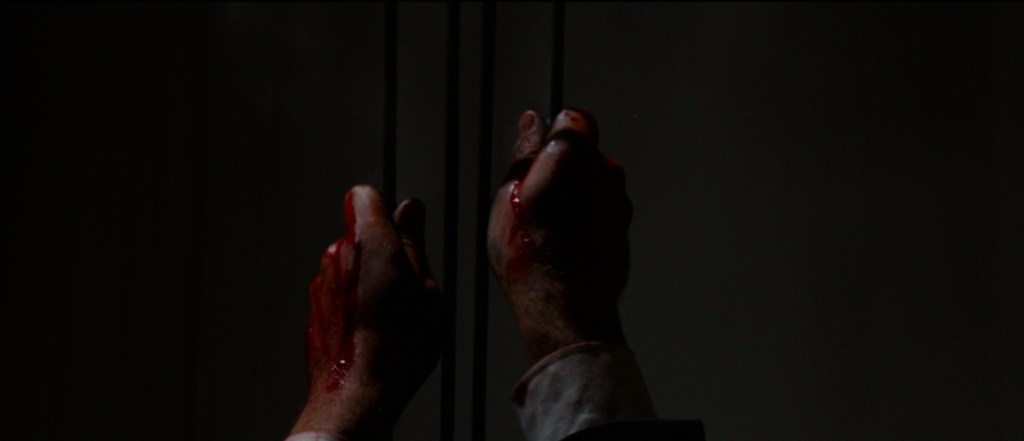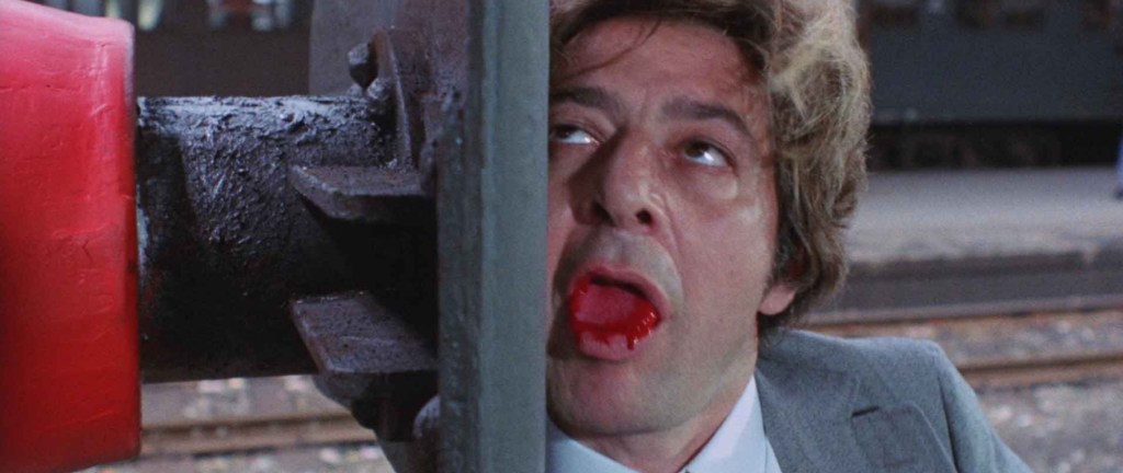 Elsewhere, Argento’s patented elaborate kill scenes are incredibly muted when compared to the like of Suspiria, Opera or Phenomena, but there’s still a couple of nastily drawn out strangulations (the second one in particular has the victim’s mouth foaming like a bloody latte), a guy’s face has a brutal meeting with a train buffer and, best of all, the someone meets a heinous end after taking a tumble down a lift shaft and we get a close up of their bloodied hands as they desperately claw at the cable all the way down.