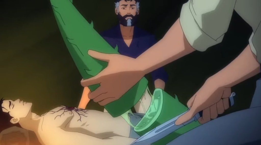 Mae Whitman has a sizable body of work in TV and voice acting and while Annie could have been something of an annoyance, the actress never lets us forget that living on this island of killer things is all she’s ever known and her cavalier attitude comes from the fact that she’s been Tarzan-ing this shit since her father was killed after their ship ran aground many years prior. Also nailing their role and putting in some impressive heavy lifting for a Netflix animated show is Betty Gilpin who goes all out in literally giving Irene a distinctive voice be it some emotional outpouring at the anguish of having already buried her daughter to dropping some typical, Brian Duffield one liners to punctuate the mood. Finally, and this might cause a little bit of contention, but I have to say that despite the fact that Charlie is something of a Marmite character, what with his constant shrieking and panicked disposition (if he was a live action character, he’d be constantly drenched in sweat), Nicholas Cantu certainly hasn’t phoned in his performance as he genuinely sounds like he’s having an actual nervous breakdown within the recording booth. Is the character grating? Sure, but you have to give credit where credit is due, thecdude’s definitely not just cashing his check and going home.