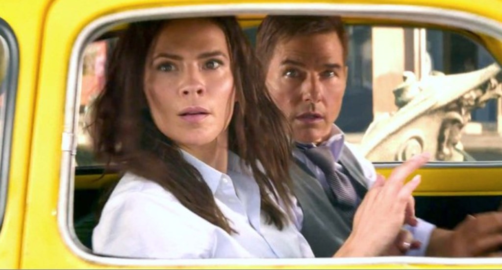 Elsewhere, some legitimate shocks aside, the core cast do well with a welcome return of Vanessa Kirby’s White Widow, but Hayley Atwell’s debuting Grace is a breath of fresh air as it means that we have an unwilling team member who doesn’t trust Hunt’s willingness to sacrifice everything in order to protect his friends and it leads to some great, handcuffed-couple-on-the-run type stuff, like a coked up Thirty Nine Steps. Elsewhere, Esai Morales is suitably threatening as Hunt’s velvet-voiced nemesis, Pom Klementieff joins fellow Guardian Of The Galaxy, Dave Bautista, by playing a memorable henchperson in a blockbuster spy franchise and Shea Whigham makes a feast of such lines as describing his quarry as a “mind-reading, shape-shifting, agent of chaos”.