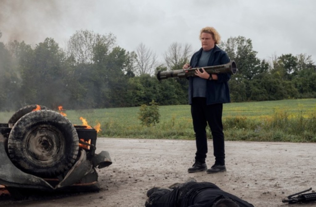 Step forward Fortune Feimster and take a bow, whose character, Roo, has been a steady fountain of brutal put-downs and weirdly outdated nerd hatred, but here scores some of the seasons strongest laughs thanks to being blasted off of her nut due to way too many pills taken to offset claustrophobia. Her misfiring rocket launcher gag is timed to excellence (as is her bemused response) and things get even more far out when a fading Aldon needs water for an impromptu operation on his gunshot wound. In true, crude-humour style, the only water Roo can source is the H²O located in her bladder but is suffering from pee shyness that only singing can release – thus we get a spirited rendition of Gordon Lightfoot’s If You Could Read My Mind by a squatting Roo, a dying Aldon and Dr. Pfeffer accompanying on the radio.