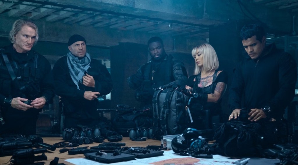 However, unlike the Creed movies, Expend4bles proves to be sloppily written and flatly directed to the point that at times I was genuinely wondering how this could get a cinematic release and a movie like Prey had to settle for streaming. Now, a shit plot is hardly a roadblock for the average, generic actioner, after all, the plot of Commando could fit on a napkin withbroom to spare and that movie is motherfuckin’ camp perfection, but the major gap in the film’s kevlar is that it commits a mortal sin that no slice of boom boom cinema can bounce back from – it’s friggin’ boring.