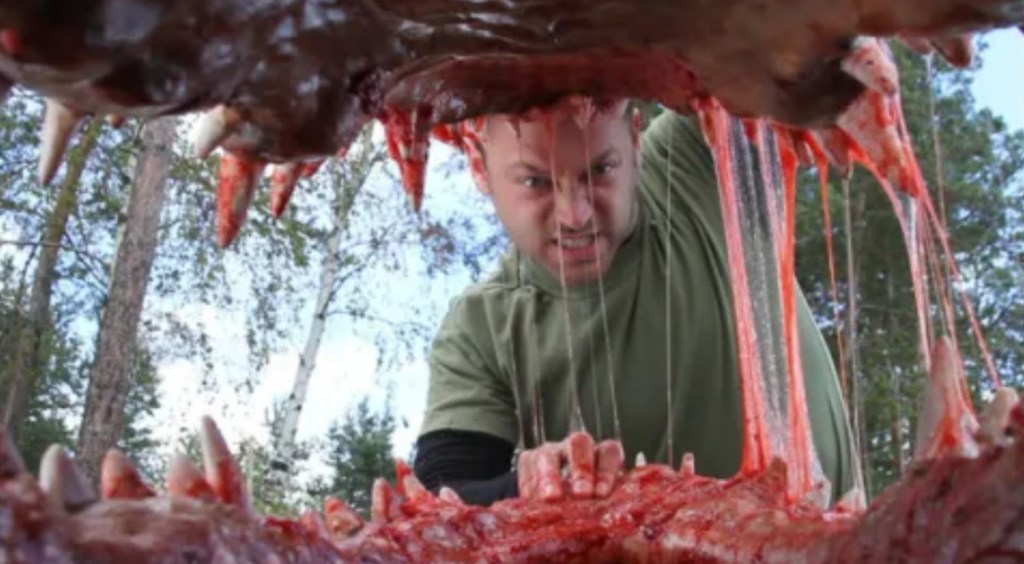 As a carnivorous shit storm descends on the coach-load of unsuspecting teens, it seems that an extra complication is in the mix when it turns out that crusty old Jim Bickerman isn’t anywhere near as dead as the majority of his cohorts and promptly starts making trouble.