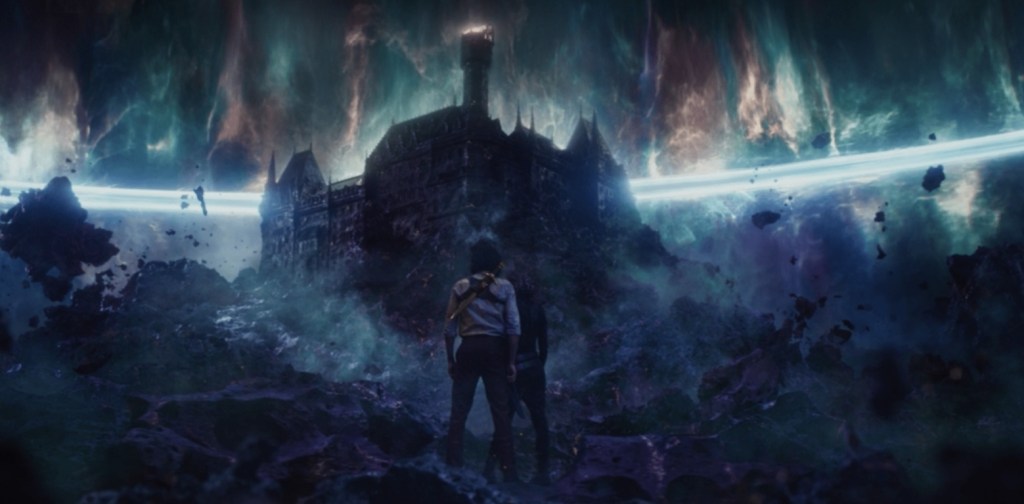 After enchanting the billowing matter-eater known as Alioth at the end of time, Loki and Sylvie succeed in opening a portal that leads to a creepy-ass castle floating on a desolate rock that’s surrounded by the Sacred Timeline and presumably the residence of whomever truly dictates the flow of time itself.