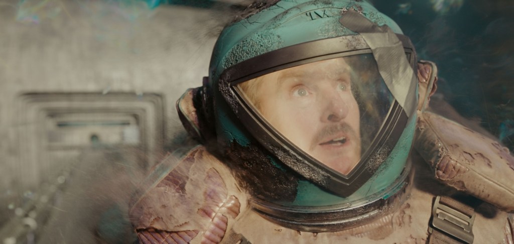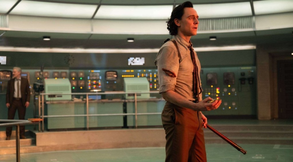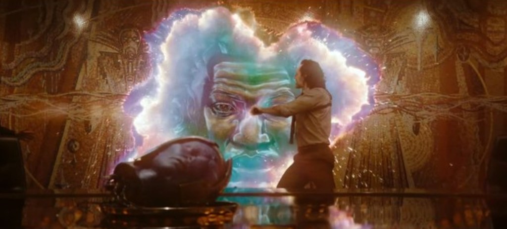 While Mobius and O.B. try to figure out Loki’s time slippage in the present, Loki and O.B. have the same conversation in the distant past, but every time Loki informs the clueless handyman about his ailment, hundreds of years onward, Mobius’ O.B. starts to figure things out as his knowledge about a previously unheard of problem suddenly gets centuries of research. It doesn’t matter if what a wrote makes a lick of sense, just rest assured that the actual scene hits that sweet spot between science and silliness that matches similar brain bending jokes from such shows as Futurama and Rick & Morty. The big payoff is that Loki has to violently rip himself entirely from every thread time and space (eg. prune himself) while Mobius dons a startlingly chonky spacesuit in order to brave the Temporal Loom, a place where raw time is weaved to formed the timeline itself in order to recombine Loki’s Asgardian atoms into the correct plane of existence.
