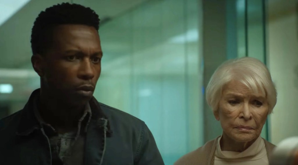 When you strip away all the pea soup, crucifix abusing and raspy voiced blasphemy, what’s made William Friedkin’s The Exorcist rightly regarded as one of the best to ever do it is its central themes of failing faith and defiant motherhood that proved to be incredibly affecting as well as undeniably haunting. What’s even more impressive is that the director weaved all these aspects into a story that never once felt patronising or spelt out in a overly conscious way. The Exorcist: Believer, unfortunately doesn’t have anywhere near such a steady hand on what it’s trying to convey, and instead frequently opts to sit you down like a child to lecture you on the nature of faith with some painfully on-the-nose preaching. In many ways, it’s frustratingingly reminiscent of the endless therapy speech that made a lot of the dialogue in Blumhouse’s Halloween trilogy so stilted and unnatural and as a result, Green’s carried over a couple of bad habits as he tackles another beloved horror institution. Yep, Ellen Burstyn returns as Chris MacNeil to make its official connections with the original irrefutable, but her appearance ends up being something of a red herring, much like Jamie Lee Curtis’ non-role in Halloween Kills. It proves to be especially frustrating when you realise that Believer starts off pretty damn strong as it fuses the nature of demonic possession with the far more close to home fears of a missing child. Its here that Green truly hits his stride, giving us another brooding, autumnal, small town America backdrop that allows the sickening worry of Leslie Odom Jr. distraught single parent to truly shine. While the family of the other missing girl is more of the typical, church going, God fearing, white bread family unit you usually get in these types of movies, they’re notably pushed to the side somewhat despite them suffering the exact same traumatic experience. Whether this is because the movie is trying to single out the religiously hypocritical father or it’s trying to equate the devotion of a single father to that of a seemingly picturesque, nuclear family, I’m not entirely sure and it’s here that The Exorcist: Believer reveals it’s most problematic trait – the second it becomes a full blown Exorcist film is ironically the exact moment it loses focus.