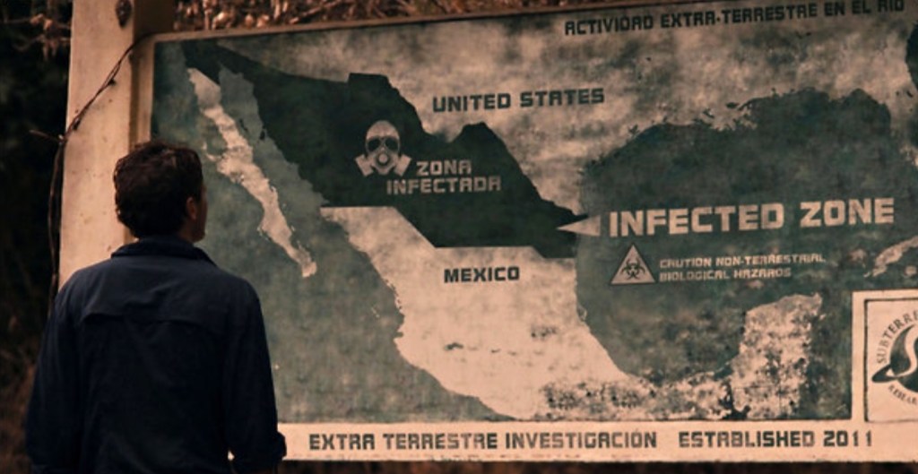 Mexico hasn’t been the same since a NASA space probe crashed back to Earth and brought with it a form of alien life that not only multiplied, but grew to form skyscraper-sized octopus creatures who cause immense damage simply by the act of moving their gargantuan mass around. As a result, half the country has been deemed an infected zone and U.S. and Mexican troops battle and bomb the creatures in order to contain them within the huge wall erected at the border.