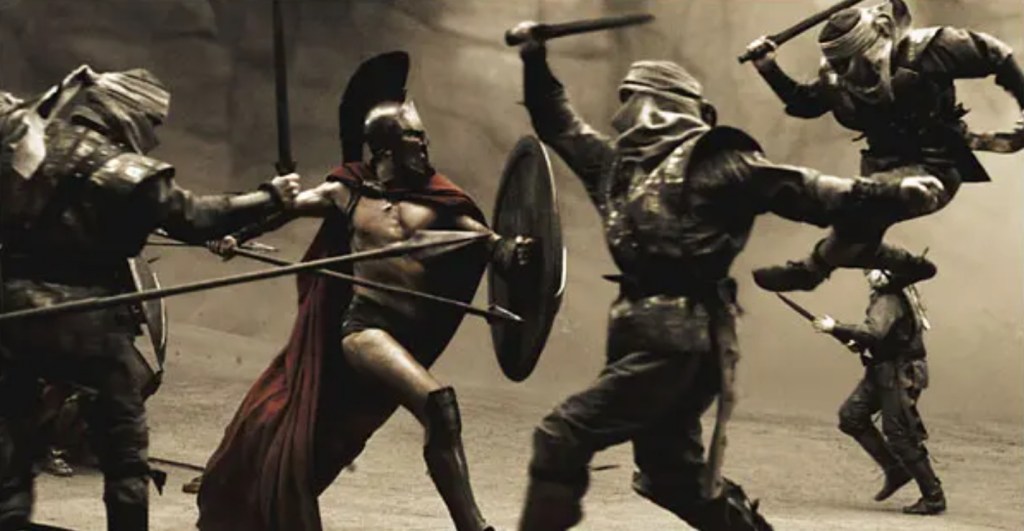 Throughout his very notable career, the indomitable Zack Snyder and his filmography has swung wildly between having me be genuinely impressed with his distinctive, muscular style (Dawn Of The Dead, Watchmen, Man Of Steel) and profoundly irritated with the excesses the man flatly refuses to subdue (Sucker Punch, Batman Vs. Superman); however, when it comes to properly understanding the filmmaker that Snyder strives to be, there’s no better movie to examine than his admittedly gorgeous, 2006, sword, sandals and slo-mo epic, 300. A spirited adaptation/love letter to Frank Miller’s graphic novel – itself an ode to overblown, exaggerated storytelling as it pumps up the legendary events of theBattle of Thermopylae up to phantasmagoric extremes – it gathers up all of the director’s favorite themes and unleashes them in an orgasmic extravaganza that bathes you in chroma-keyed visual that strives to outdo even Robert Rodriguez’s Sin City in the stakes of being a living comic book.