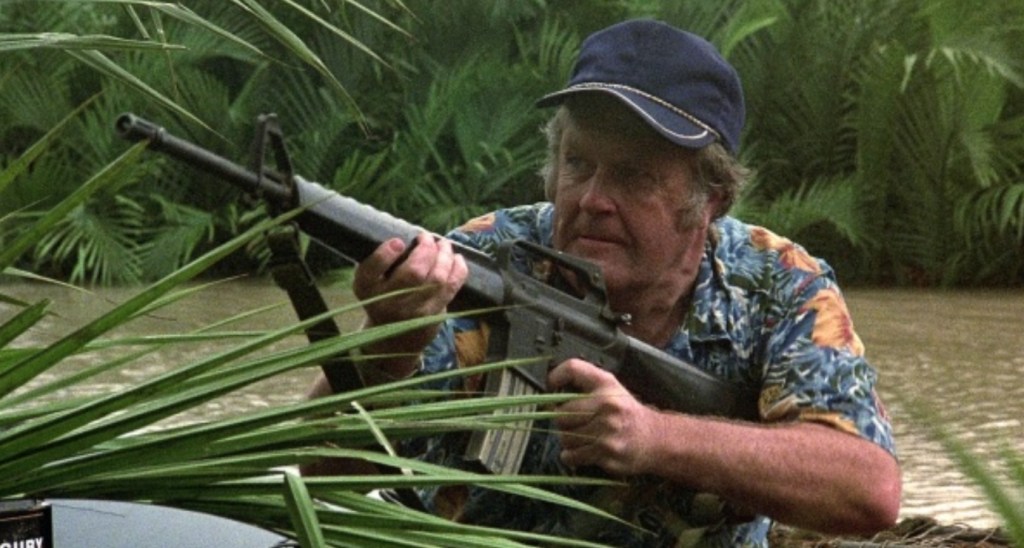 After discovering where the remaining POWs are being held by breaking into Trau’s fortified estate and hurling a knife into his chest (Braddock may not know the meaning of the word fear, but he also doesn’t quite have a good grasp on the phrase “international incident” either), our impossibly steely hero vows to right past wrongs, hooks up with his super-grizzled, old war buddy, Jack Tucker, and forges into the jungles of Saigon in a bullet proof river boat faster than you can say “Rambo: First Blood Part 2”.