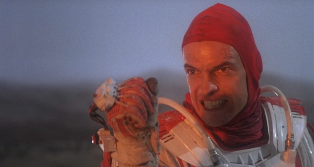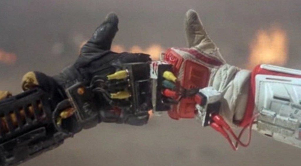 Alas, even the inclusion of bitchin’ robots fighting in space weren’t enough to raise Robot Jox above the realms of dumb pulp for me and the pilot’s amusingly awkward, Top Gun style salute – a thumbs up fist bump known as the “crash and burn” – proves to be shockingly apt.