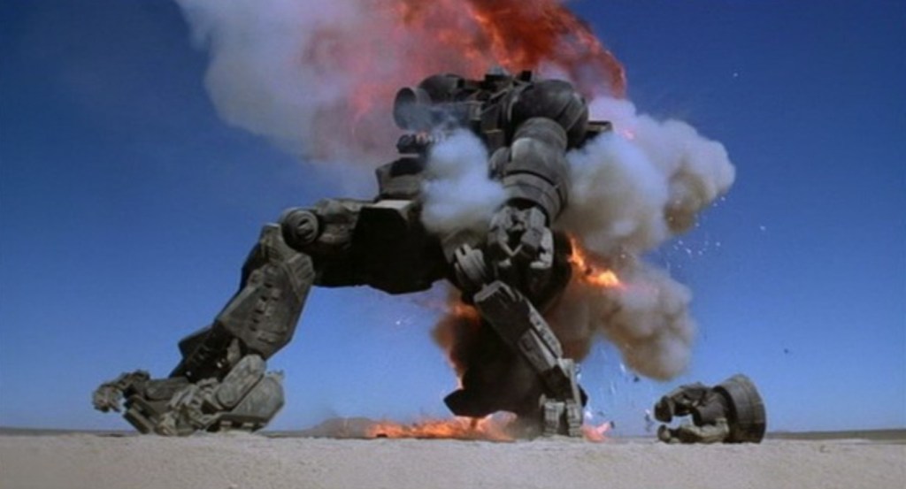 Utilising every Mecha trick in the book and even chucking in some Rocky IV style, Cold War angst to boot, Robotjox looked like it could be a tidy little sleeper hit in the making, but due to some financial issues with infamous, low budget producer, Charlie Band, and the combined fact that tensions with Russia had ceased and Transformers had dropped in popularity meant it was destined to become a cult oddity. What do you Mecha that?