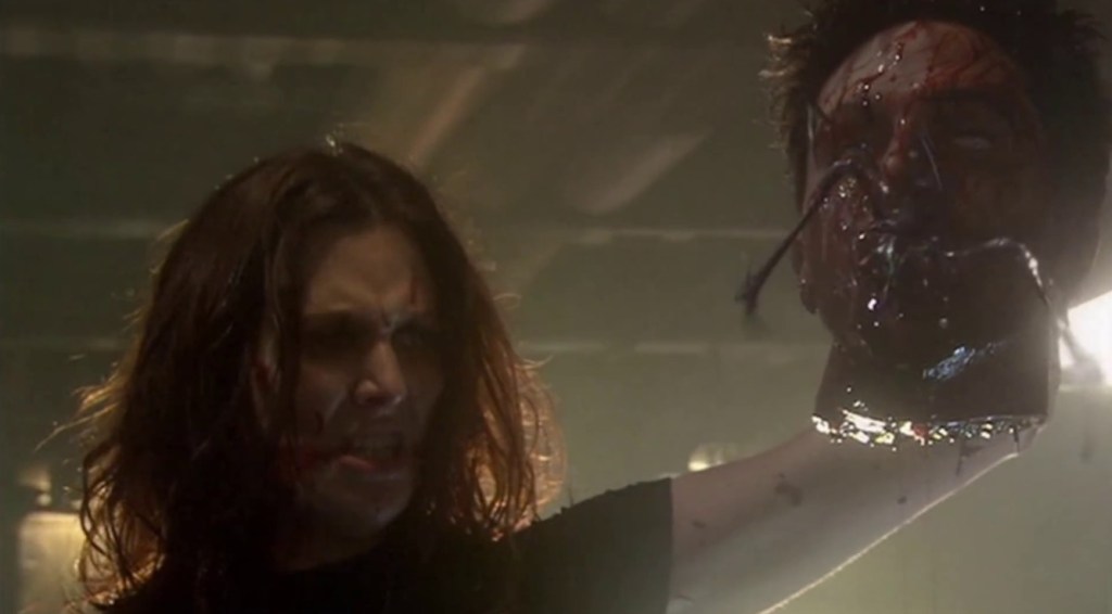 Ok, sure, the characters are mostly bone-head cardboard cutouts either yelling military rhetoric or uttering mercilessly camp dialogue without irony – but that was the joke that Verhoven was playing on us (not to mention the cast and the producers) in the first film, he was just doing it ironically. Secondly, the notion of having a bug in your skull is not only grim as hell; but Tippett makes it a gooey as possible thanks to a bunch of gnarly gore gags that retains the bloodthirsty nature of the series. Whether it’s a bug-controlled trooper who is literally rotting to pieces under everyone’s nose or an awesome moment where once of the creepy crawlies vacates a freshly severed head, you certainly get your money’s worth even if you don’t get the scale.