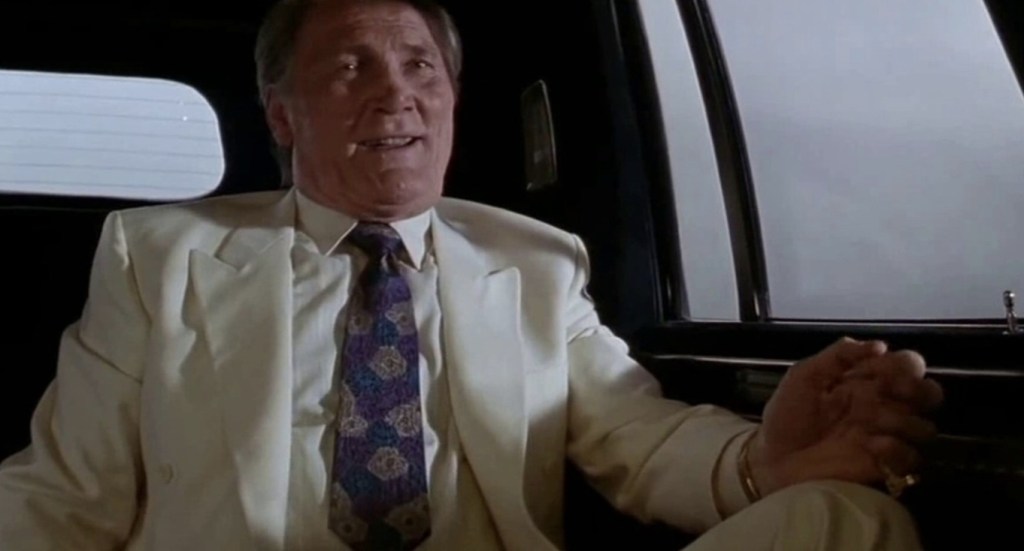 Best of all, the supporting cast is positively groaning with shifty-looking character actors who are led by a wildly overacting Jack Palance who delivers his line with such unfettered gusto, it makes his performance in Batman seem understated by comparison. He’s joined by such familiar faces as Brion James (trying and failing to play a cockney), James Hong, Michael J. Pollard, Robert Z’Dar, Geoffrey Lewis (in the worst wig you’ve ever seen), Clint Howard, Michael Jetter and Eddie Bunker and their appearance just gives the whole thing even more of the feel of a living cartoon.