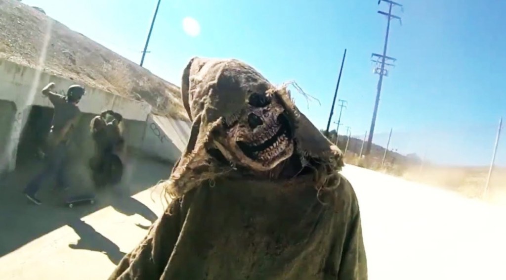 The final tale concerns a scumbag cameraman who has been hired by professional skateboarders Jason and Danny, to help film a promo film, but he secretly hopes one of the two guys fatally hurts himself so he can sell the footage. However, in an effort to find more interesting locations, the mismatched group end up in a remote flood channel in Tijuana that’s covered in pentagram graffiti – but after some stray, spilt blood awakens some robed zombies, the guys find themselves fighting for survival.