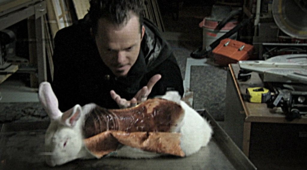Interspersed throughout these proceedings are, naturally, three demented tales and the first is Dante The Great, a story that’s partially framed as an investigative documentary about the titular magician, who arrived on the scene, seemingly out of nowhere, and performed knockout feats of magic that defy belief as he levitates members of the audience or transports them from New York to LA mid performance. However, after a string of missing assistants, we find out that the cape Dante (real name John) wears is enfused with some sort of unholy power.