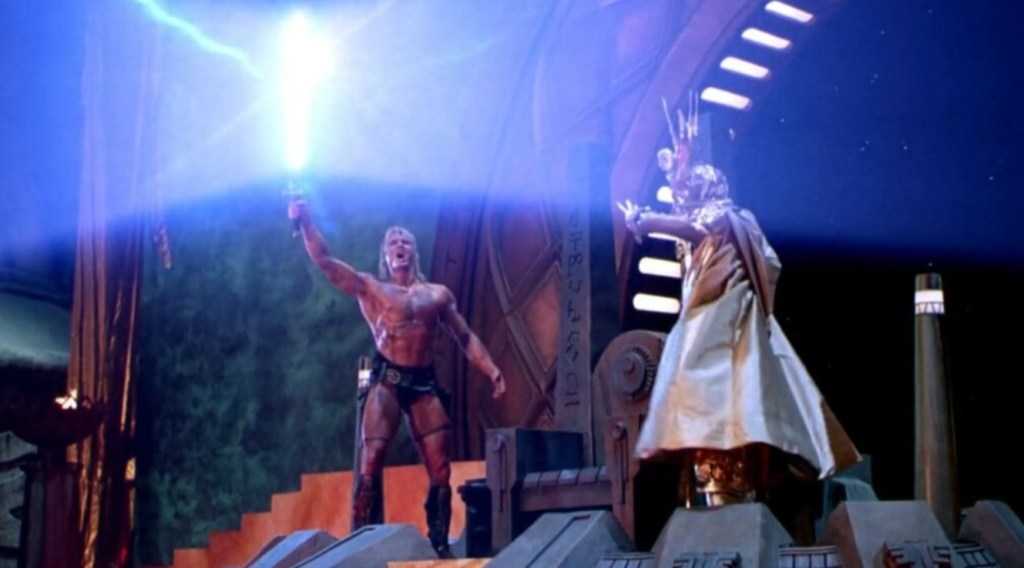 As a massive fan of He-Man back in the day, the ernest results of Gary Goddard’s adaptation horrified me to the core as I was simply too young to grasp not only how tough it was back then to realise such things on an 80s budget even if your studio wasn’t collapsing in on itself like a badly financed white dwarf. Why did everything look different? Where were the majority of the beloved characters like Battle Cat, Orko, Trap-Jaw and Ram Man and who the fuck were these new ones? However, as an adult, it’s clear to see that Masters Of The Universe halfway more problems going on than just being responsible for changing up the way Beast Man looks or ditching the character of Mer-Man, as of all the big budget attempts at realising a cheesy fantasy movie, this could be by far the cheesiest.