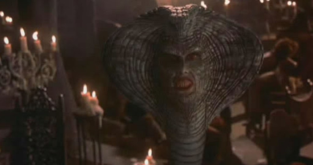 Of course, all the tempestuous romances and endless grudges get rudely swept off the bar like bottles during a bloodthirsty vampire brawl and while The Hangman’s Daughter doesn’t really have the budget to keep up with the epic rumpled in the first film (or even its remake in the 2014 TV series), there’s still enough random, crazy shit going on to marginally sate our thirst for fucked-up, supernatural pub fights. One vamp has his head torn off only for a human faced cobra to inexplicably rise from the stump, while a turned Rebecca Gayheart tries to ensnare victims with monstrous intestinal eels that erupt from her stomach. It doesn’t make a hell of a lot of sense and it renders the already messy plot almost completely moot (numerous characters die before their arcs have a chance to have much of a point), but the nudity and grue flies about the place enough to be far more entertaining than the second movie