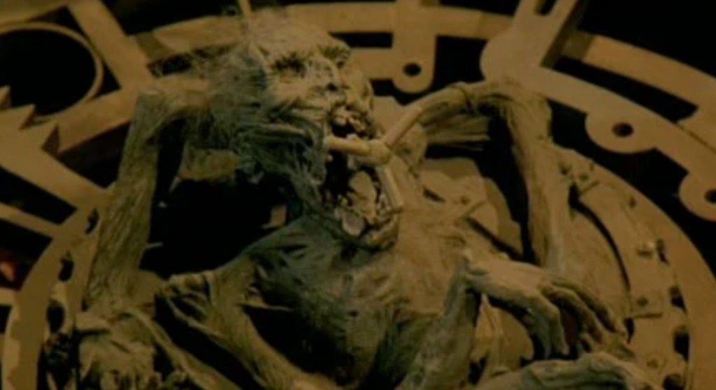 Of course, evil like that never truly stays down for the count forever and in the present day, the cathedral’s new librarian and an artist supervising the restoration of some murals stumble on the building’s shocking secrets as they attempt to get into one another’s pants. However, while artist Lisa is somewhat vary, librarian Evan jumps right in, obsessively searching the unstable catacombs for a “stone with seven eyes” detailed in a piece of found parchment. In a textbook case of “be careful what you wish for”, Evan succeeds in his search and his reward is the unleashing of a hell of a lot of trippy shit. While Evan himself becomes enthralled by an ancient evil which he promptly spreads to the church sacristan, both Lisa and the kindly priest, Father Gus, all start having spooky visions that alert them that something biblical is about to go down.