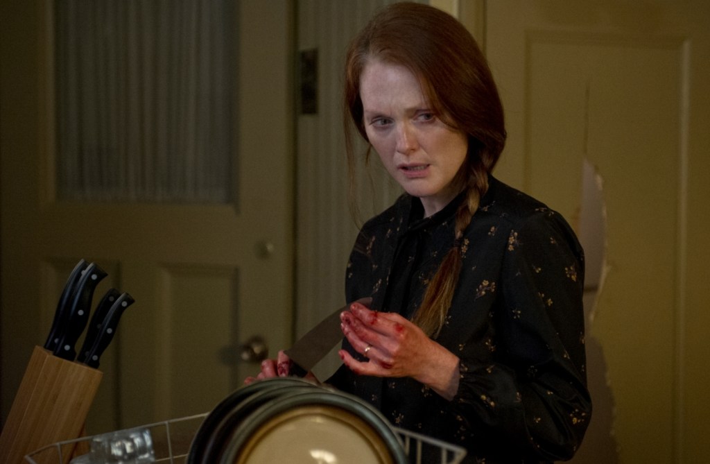 However, it’s with the adult casting that Carrie ’13 gets really interesting with the rather inspired choices of Judy Greer and Julianne Moore as the two opposing women in Carrie White’s life. While Greer’s shift into more mumsier roles (in comparison to what she plays in Archer, at least) puts her in great stead as the crusading gym teacher, if anyone had a chance at matching Piper Laurie as the frankly terrifying Margret White (they don’t) its Moore. Yes, Laurie will always reign supreme as a King villain who could even give Kathy Bates’ Annie Wilkes a run in the crazy stakes, but still does fine work as the self-harming, bible spouting, knife waving matriarch of the White family and it’s a shame she isn’t given more chance to interact with the other characters.