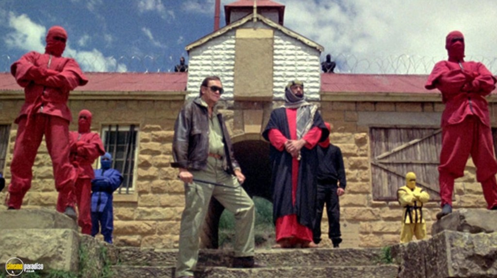 Delving deep into the Cannon Group sack of nefarious supervillain plots, we find that Muslim militant Shiekh Ali Maksood has joined with Colonal Scarf Mulgrew, an American hating ex-British policeman to concoct a dastardly plan to smuggle a Suitcase Nuke into New York. In retaliation, a Delta Force unit has been sent in to sort this mess out, only to run into Maksood’s sizable Ninja army and those who aren’t sliced into ribbons or riddled with arrows are captured to be executed at a later date.
