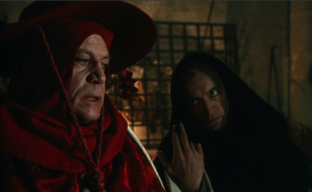 However, as truly mental as it is, two things keep The Pit And The Pendulum being inherently watchable and while the first is some outlandish horror set pieces (watch Esmeralda scarf down gunpowder on her way to a bonfire only to explode like a claymore during her execution, peppering the front row with fatal bone shrapnel), the second is something all the more uncontrollable.