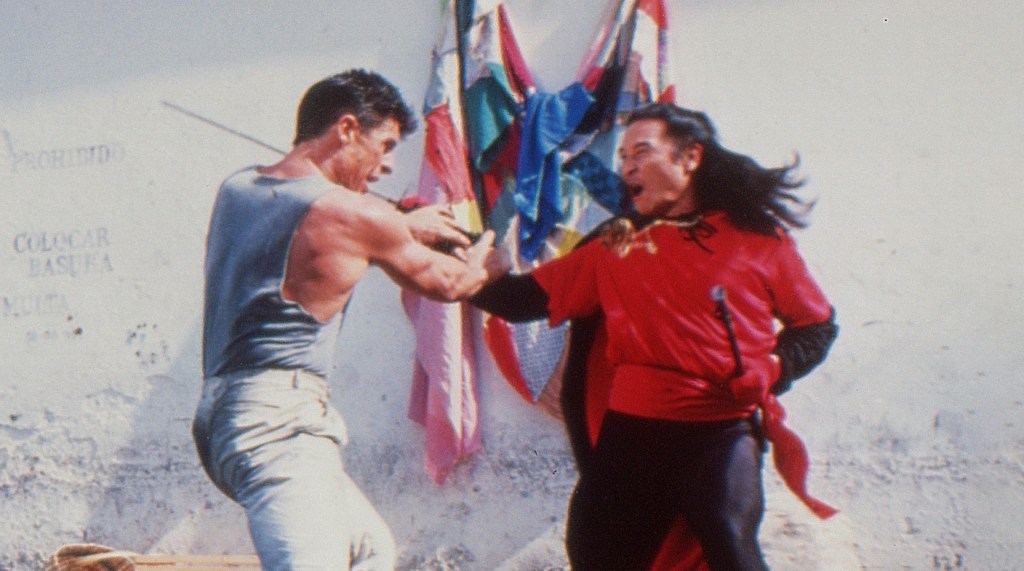 Regardless of your feelings about action cinema’s most blatant act of cultural appropriation, there’s something deeply impressive about the fact that this legendarily childish franchise somehow made it to five installments. However, techinally, the fifth outing of caucasian martial artists pounding seven bells of crap out of dudes in various colours of ninja garb isn’t actually an American Ninja entry at all and actually was shot under the typically patriotic title of American Dragon despite still starring American Ninja back up lead, David Bradley.