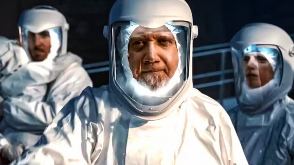 Of course, there’s far more people gathered for Barbrow’s moment of triumph than 30, so after a spot of executions, Barbrow’s chosen group – including Merche, her adopted son and a mind-wiped and subservient Paco – hop aboard the spaceship to make their final journey.