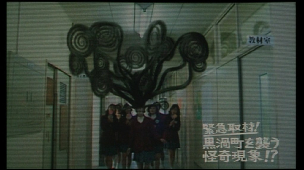 On her day to day routine of high school, running though weirdly empty streets and getting bike rides from her sullen, sort-of boyfriend, Shuichi Saito, student Kirie Goshima has noticed increasingly strange happening occurring in her home town of Kurouzu-cho. It starts when she notices Shuichi’s father crouching in the street, excitedly filming the spirals on a snail’s shell that kicks off an obsession that soon grows into something more sinister.