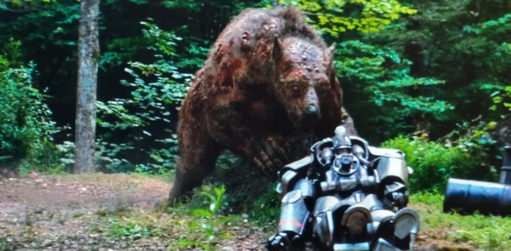 Elsewhere, we also get to see Walton Goggins’ Ghoul strut his stuff as he struts into the story firing bullets so powerful they spectacularly pop heads like brain-filled balloons and blows perfectly round holes through sternums like something out of a cartoon. It’s awesomely visceral stuff and beautifully shot and edited and it even manages to take Wilzig off the board in double quick time.