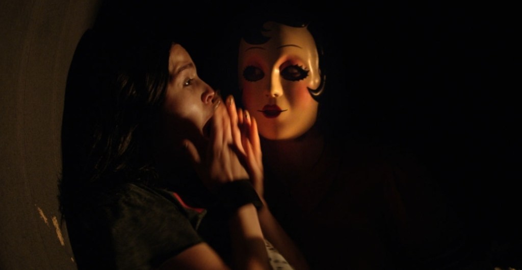 After discovering that their relatives have been long since sliced into ribbons, the fractured family have to try and withstand the assault that the Man In The Mask, Dollface and Pin-Up Girl unleash on them and if they’re going to survive the night, they’re going to have to pull together.