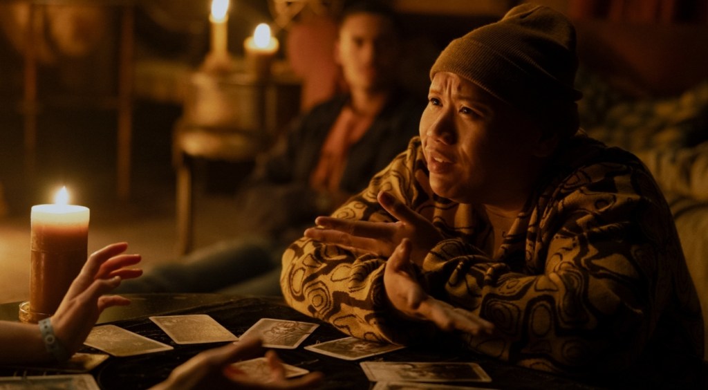 However, to anyone with more stringent horror tastes, Tarot ends up being the kind of dopey, basic affair you could have sworn died out in the 2000s that is completely willing to overturn any genuine scares or tension if the comic relief in their midst thought up a cool improv on the day. Step forward Jacob Batalon (aka. Ned Leeds from the MCU Spider-Man movies) who seems to be having genuine fun doing his usual schtick whether it harms the movie or not. However, while hes the most watchable and likable presence in the movie by far, without a presence like Tom Holland, Zendaya, or a CGI lizard-man to bounce off, his endless, meta-jokes not only feel carbon dated to around 1996, but it unravels any scare within two hundred miles of him. Still, being the worst thing for the film isn’t so bad if you’re also the most entertaining thing in the film – so I guess he’s all square…