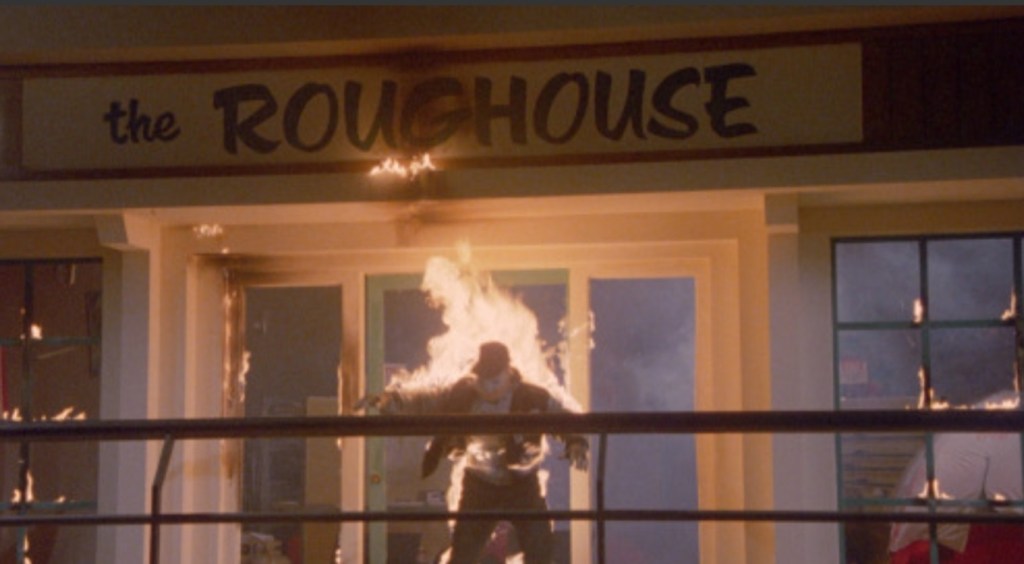 Still, Derek Rydell’s Eric Matthews proves to be a fun also-ran to the slasher titans of the decade and while Freddy, Jason and Michael may be big stars and all, could they pull off a perfect reverse spin kick? Okay, so maybe having the fighting abilities of Patrick Swayze from Road House may not be as cool as being able to murder people in their dreams and Eric’s choice to accentuate his Phantom mask with a baseball cap and varsity jacket is hardly as striking as a red and green stripped sweater or a hockey mask, but as B-list slashers go, Eric’s not bad at all.