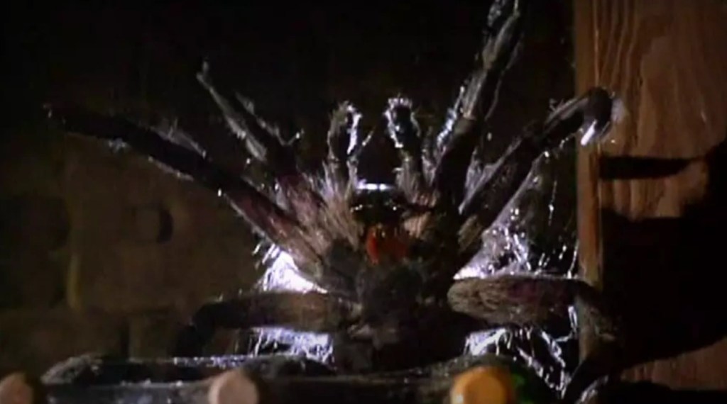 Did I like the fact that, in an attempt to not tarnish itself with the label of “horror, it was sold as a thrill-omedy? Absolutely not and I feel like I have to wash my hands after typing that particular bullshit phrase, but it’s that perfect, Spielbergian mix of likability and outright trauma that makes the movie so special. Starting with the gnarly stuff, long-time producer, first-time director Frank Marshall certainly doesn’t hold back when comes to the moments that make you spasm uncontrollably with revulsion and he basically thrusts every nightmare scenario you can think of directly into your face in a gleefully spiteful example of an anxiety jackpot. Sensitive to the idea of a spider falling on your face while in the shower and then slowly getting washed down your entire, naked body? Frank’s got you covered. A bit wobbly at the thought of a spider the size of a catcher’s mit hurling itself at your face like a fucking face hugger? You might need to sit down, as the movie delivers all these moments and more with a impressive array of animatronics, puppets and an actual army of real life spider thespians that were wrangled by lemon Pledge and hair dryers.