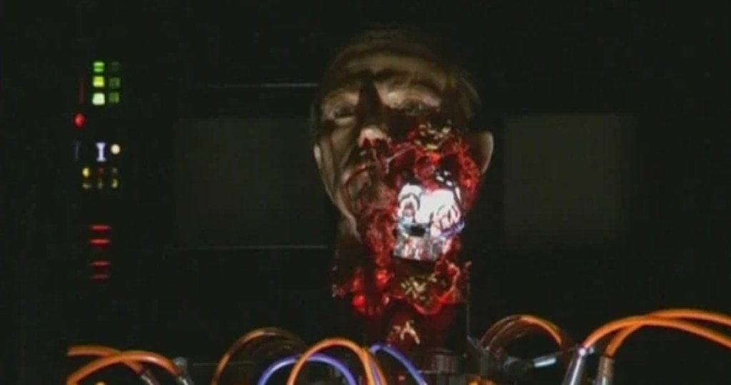 That just leaves Hector, an inhuman antagonist who stands astride the line that divides Frankenstein and Alien, if the xenomorph was constantly making uncomfortable sexual requests at Farrah Fawcett – but I guess that’s what you get when you name the series of your robot “Demigod”. Still, the creepy robot certainly looks the part, and with his little box head emerging from a metallic, buff torso, he looks like either pubity hit Wall•E like a fucking Mac truck, or Johnny-5 from Short Circuit got uncontrollably ripped from robo-steroids. However, while Johnny-5 was a perfect gentleman with Ally Sheedy, Hector is uncomfortably rapey thanks to his personality download from a raging psychopath and anyone expecting a slick, sci-fi thriller might be stunned about how dark things get – I certainly did when first I watched it at a worrying young age. Be it the strange sexual under – no wait – over currents of the plot or the weird-ass, out of the blue, moment where Hector wears Benson’s head as a hat like he’s the fucking Merietta Mangler from Con Air.