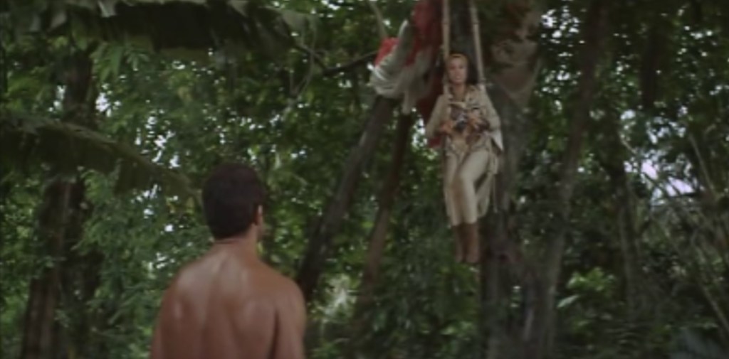 Aside from that, it’s all standard Greystoke stuff – there’s the comedy chimp getting up to his typical shenanigans (not including biting someone’s face, of course), outsiders arriving to offer Tarzan a mission, yet another replacement for the character of Boy and some iffy internal politics concerning a local tribe. The problems that the script tries shoehorn in so many of these connecting stories, it actually forgets to do much with its frequently oily lead.