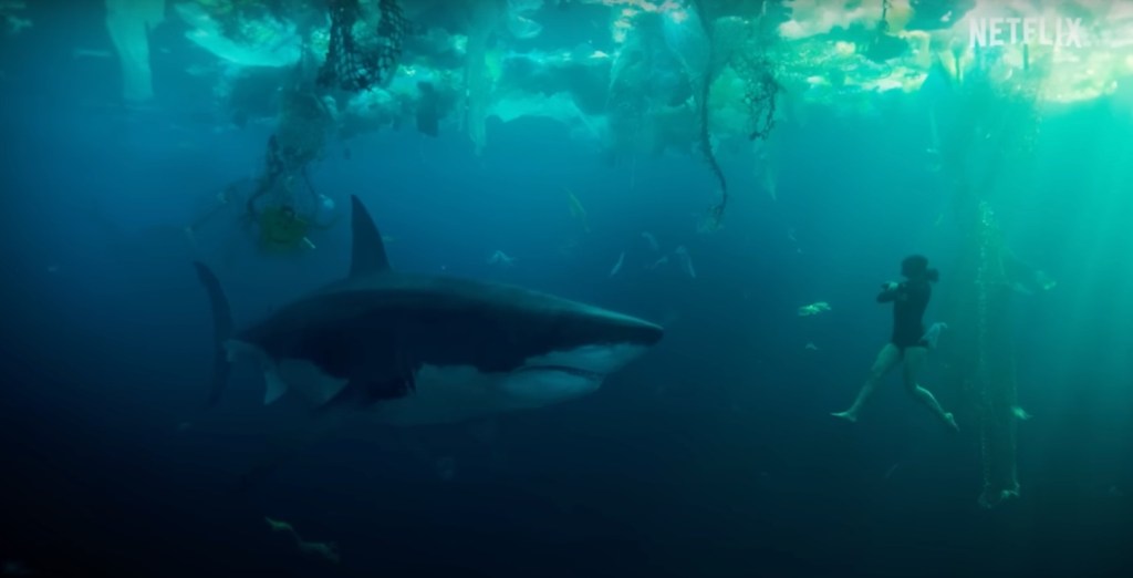 North of Hawaii lies the Great Pacific Garbage Patch, a vortex of discarded plastics that’s three times the size of France, that’s built up thanks to decades of careless polluting. In this ecological timebomb, we find Sophia, her husband and her fellow researchers as they are track Lilith, a two meter long mako shark that they’ve been studying; however, as these eager boffins strap on their scuba gear and hurl themselves into the sea, they soon find that nature is about to play a cruel trick on them.