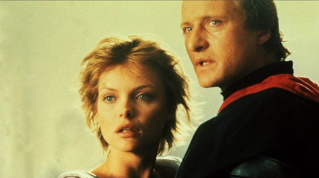 Firstly, the good of the movie chiefly come from that cracking central conceit that keeps its central lovers so tantalisingly close, yet utterly unable to truly be with one another and the film’s use of the hawk and the wolf as their alter egoes just sells it all the more. What also helps is that glacial sex appeal of Rutger Hauer and the flawless beauty of Michelle Pfeiffer really sell all of that pent up longing that practically ebbs out of the screen like waves of deeply horny radiation. Secondly, Donner is simply just too good a director for Ladyhawke to simply be unpalatable and with the Italian setting and pinkish filter constantly turning the sky a telling tint of rose, it certainly feels different from a lot of its fanciful peers.