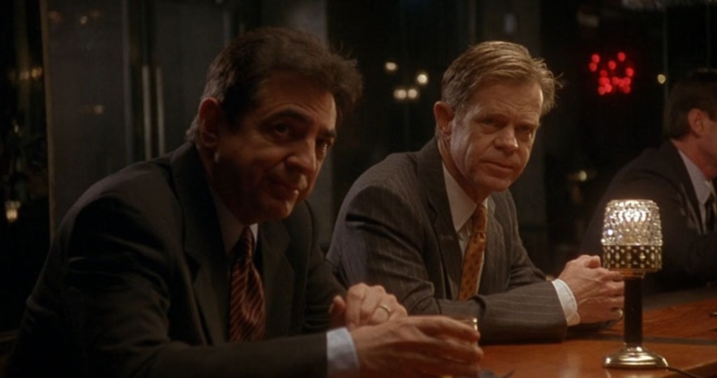 It would be tough to find anyone who could put a positive spin on Edmond’s blundering, borderline psychotic behavior, but holding the entire enterprise together is the king of the hangdog expression, William H. Macy, whose spirited performance as an unhinged asshole makes the entire enterprise watchable. Macy’s played sad-faced, immoral types before (hello Fargo), but here he’s given licence to deliver frustrated, jumbled rants that gives a legitimately creepy idea on how twisted his buttoned down life has become. Macy is, of course, great – but the impressive laundry list of recognizable faces that surrounds him are a little hit and miss. While Joe Mantegna as the bar patron and Bokeem Woodbine’s cell mate make impacts (the character role in particular ends up with the most unpredictable outcome you can imagine), the majority of the female roles are either just whores who explain the ins and outs of prostitution to a black faced Edmond to whatever the hell Julia Stiles is trying to bring to her role as a tragic waitress.