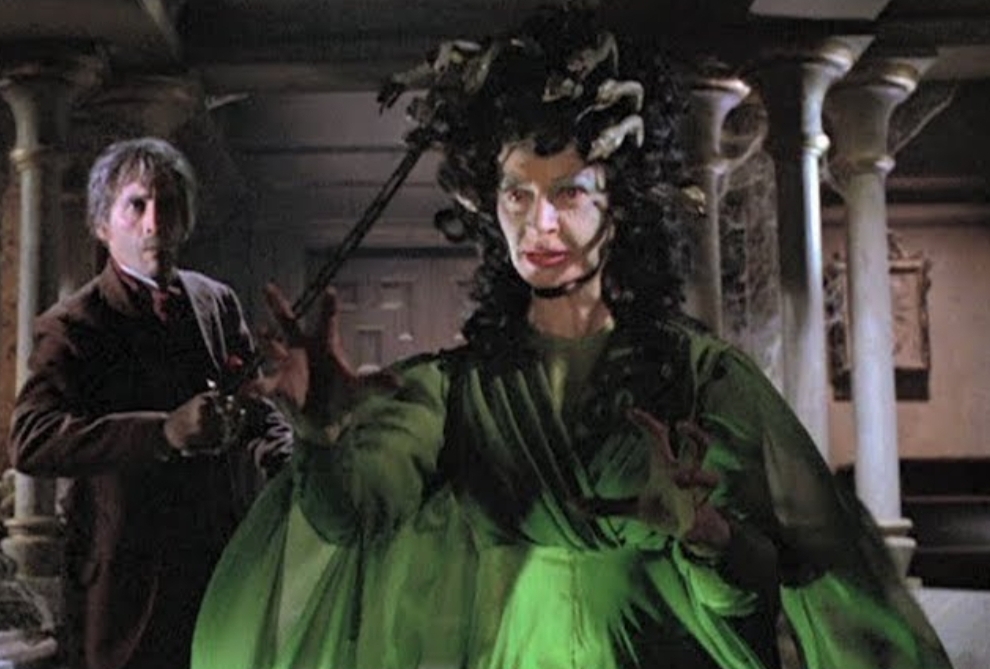For a start, Fisher knows atmosphere like Michael Bay knows explosions, so that lush sense of technicolor dreas that the director can conjure so effortlessly is in full effect and with it comes some genuinely memorable images. Yes, the Gorgon herself with those obviously rubber snakes spasming and jerking comically on he scalp may pale horribly compared to the iconic, Ray Harryhausen version seen in Clash Of The Titans, but the short where Paul look down into a puddle to see her looming over him in the quivering reflection is a doozy of a shot and is creepy as hell. Similarly, the concept that it takes a good hour or so to fully turn to stone is actually quite gnarly when you think about it and even smeared in grey face paint, Michael Goodliffe sells the absolute fuck out of it while his character struggles to write one final letter to his son.