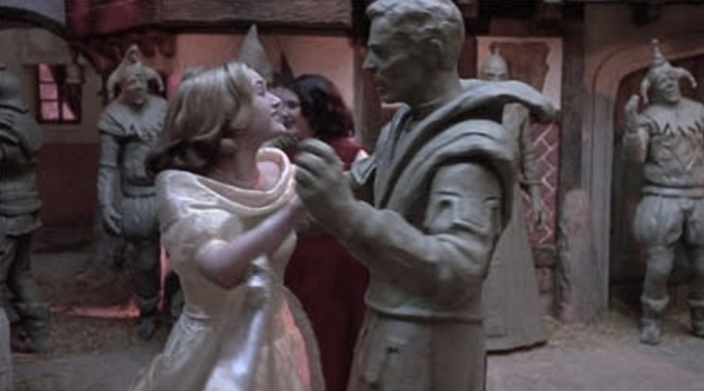 The fantasy kingdom of Borovnia has that usual, medieval look, but its denizens are realised as giant, clay figurines that resemble the models the girls have painstakingly molded during their creative sessions and they both frequently retreat here when the pressures of their lives become too much. Elsewhere, Jackson merges in other things to make these girl’s tastes flesh such as a shared love for tenor Mario Lanza, or a bravura sequence where the girls pretend to be terrorized by Orson Welles after a screening of The Fifth Man.
