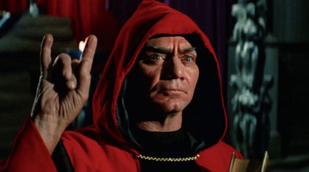 However, the story goes on with Tom Skerritt’s brother character in the mix and from there, shit gets even weirder as as the movie gets even further buffeted by premonitions, Borgnine transforming into a goat monster mid-prayer and the sight of none other than John Travolta in his first screen role as he staggers about the place with eye sockets emptier than his 1975 filmography. It sure ain’t subtle, but Fuest’s quest to go all out camp with this trippy little flick results in a movie that not only goes hard with the freaky imagery, but also manages to avoid the greater sin of being boring for virtually the entirety of its runtime.