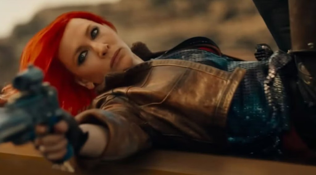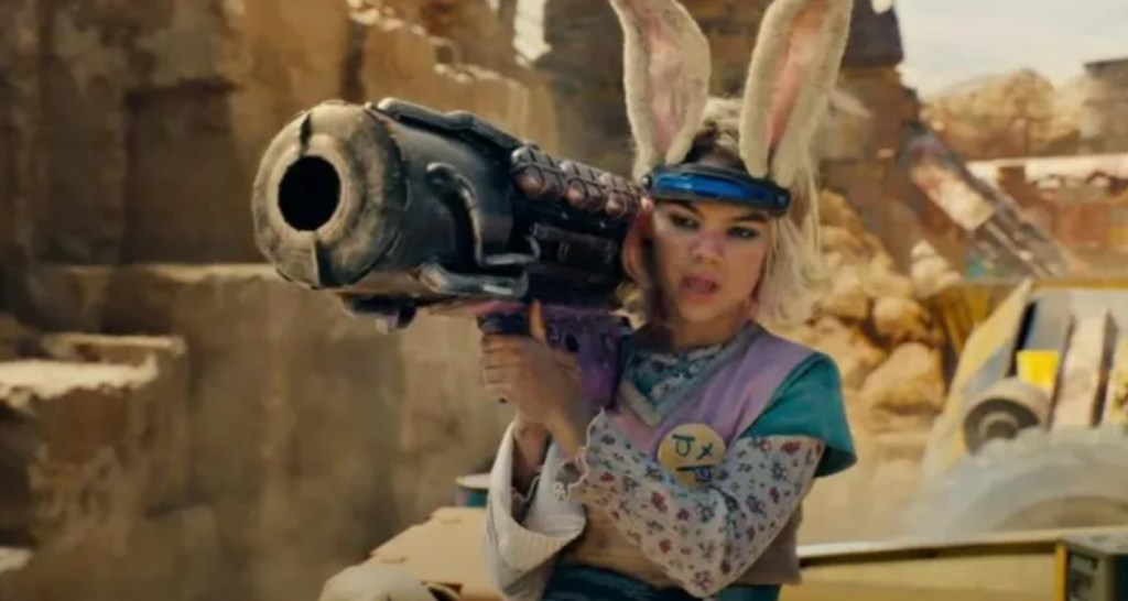 In a chaotic, violent universe run by monolithic corporations, we find the planet Pandora (no, not that one – another one), a ruthless wasteland that attracts all kinds of greedy scum due to the legends of a hidden, alien vault that is rumoured to contain untold alien treasures. Into this thrift store version of Furiosa is hurled Lilith, a sultry bounty hunter who is hired by the villainous head of the Atlas corporation to locate his kidnapped (read: liberated) daughter, Tiny Tina, who has been spirited away to Pandora by turncoat soldier, Roland. It seems that Tina is apparently the missing link in figuring out the whereabouts of that nebulous vault and is also integral to opening the thing too and Roland is trying to find redemption by stopping Altas from getting his corporate mitts on it.