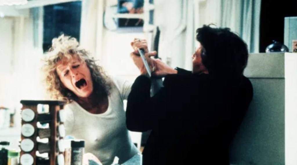 However, the agreement that this fling is only to be a one night stand immediately starts to feel a little shaky when Alex convinces Dan to spend the following day with her, but when the time eventually comes for him to return to his life, Alex starts to show something of a disturbed streak that gets out of hand terrifyingly quickly when she slashes her wrists in order to get Dan to stay.