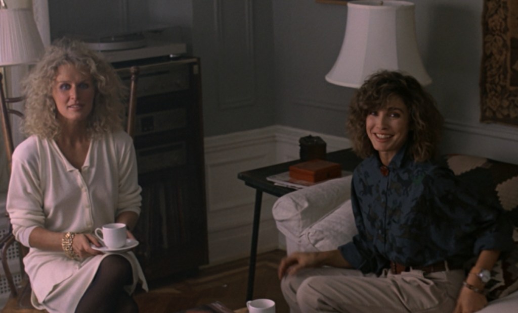 And thus we simultaneously find Fatal Attraction’s real victims and possibly Lyne’s most important stroke. While a more modern film might have tried to give Dan a motive to cheat on a picturesque family, such as a nagging wife or a brattish kid, the movie understands that all the reason a certain kind of man needs to sleep with someone else is simply because he wants to.
