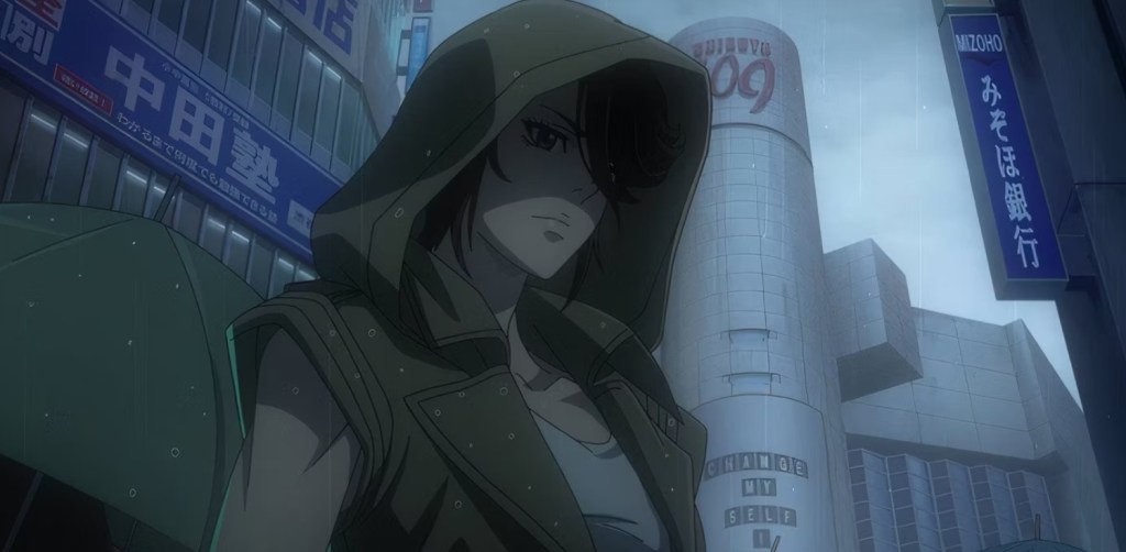Still, as over familiar as a lot of the episode is, it’s still damn cool to see it rendered in hyper stylized animation and even though most of the plot is taken up by shuffling the cast into the roles they’ll be portraying once the dystopian shit really hits the fan, it’s sandwiched between two stock Terminator action scenes. The first sees the faceless T-800 Eiko was scrapping with in the first episode track her down and start blowing away people left and right while she’s powerless to help due to her first class trip to the past being already underway. Not only is it gruesomely graphic, but it brings with it echoes of the police station massarce from the original film and following that, the episode closes with Eiko temporarily thwarting the Terminator sent to wreak havoc after it attacks Malcolm Lee and Misaki on a bridge. And yet despite of some nifty action beats, there’s still a sense that the show hasn’t truly cut loose yet and that it’s simply treading the established Terminator path in order to enact a massive rug pull.