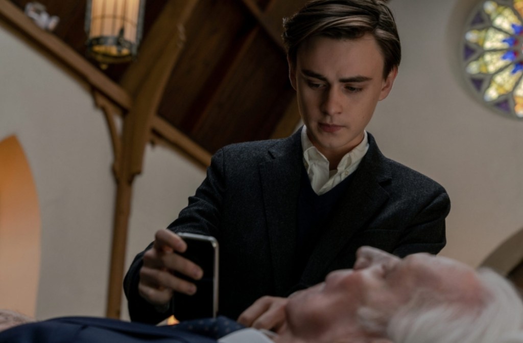 All this is all very well and good, but Mr. Harrigan’s Phone plays things so subtle that it often teeters on the boring side and, ironically, will no doubt gave less attentive viewers reaching for their phone to doomscroll rather than fully invest in this quietly modest tale. The thing is, the story is fairly creepy on paper as this young boy realises his actions with a phone has somehow got him a connection with the other side (Apple really should include that in their ads), but all this seems to disperse in a puff of dust when put on film. There’s some truly unsettling concepts at work here, especially when you consider that Harrgian’s spirit has been trapped in transition to the other side by Craig’s spontaneous act of returning Harrigan’s phone with his body at the funeral and enacts Craig’s isolated bursts of anger against a bully and a drunk driver at random points, but the film seems far more interested in probing the drama and providing free advertising for Apple at every given turn.