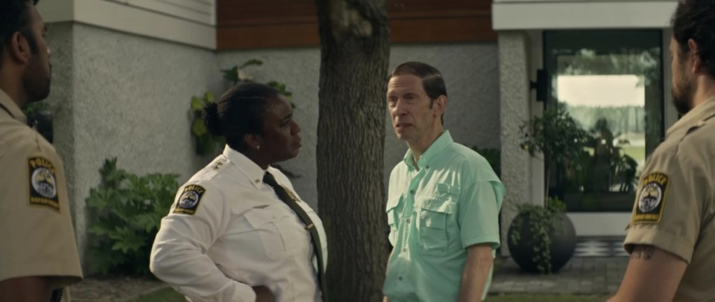 However, Levitt’s Terry seems to have walked directly out of Raising Arizona while Lily James’ scheming wife feels more like Blood Simple and Uzo Aduba’s mourning police chief has the gentle, capable air of a Marge Gunderson from Fargo as she quietly assesses the mounting carnage with a sensible eye. Other, ever more exaggerated, side characters much like Simon Rex’s slimy masseuse and Tim Blake Nelson’s shifty shrimp magnate also strongly resemble the type of dark buffoonery that the Brothers Coen have specialised in for decades.