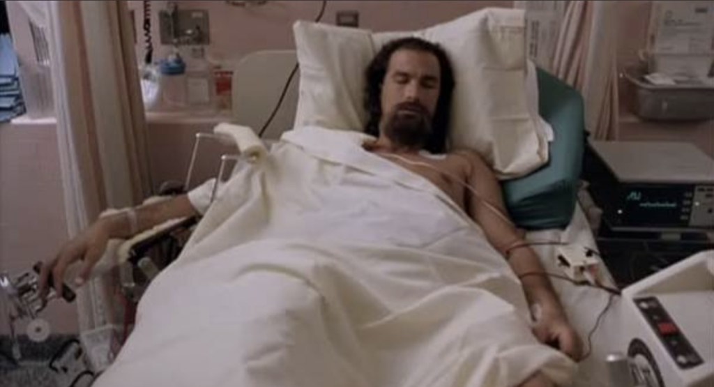 Before you know it, Storm and his wife are visited by masked, shotgun weilding assailants who blow both our hero and his missus away while his young son – who is actually named Sonny – escapes into the night. However, in the operating room, Storm lives up to the title of the movie by indeed being hard to kill, but even though his heart starts beating, that doesn’t save him from being stuck in a coma for seven years that ultimately gives him the type of hair and beard combo usually seen on a member of The Moody Blues during the 70s.